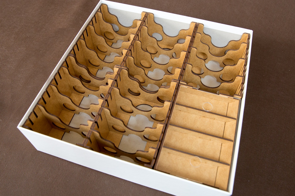 Cena obejmuje pudełko tekturowe wraz z insertem do samodzielnego sklejenia. Cena obejmuje elementy insertu do samodzielnego sklejenia. Insert wykonany jest ze sklejki lub HDF-u o grubości 3 mm, nie jest malowany. Do sklejenia wymagany jest klej WIKOL, który możesz kupić tutaj. Komponenty gry przedstawione na zdjęciach nie wchodzą w skład sprzedawanego zestawu. Produkt może różnić się kolorystycznie od widocznego na zdjęciach – zależy to od partii sklejki lub HDF-u.