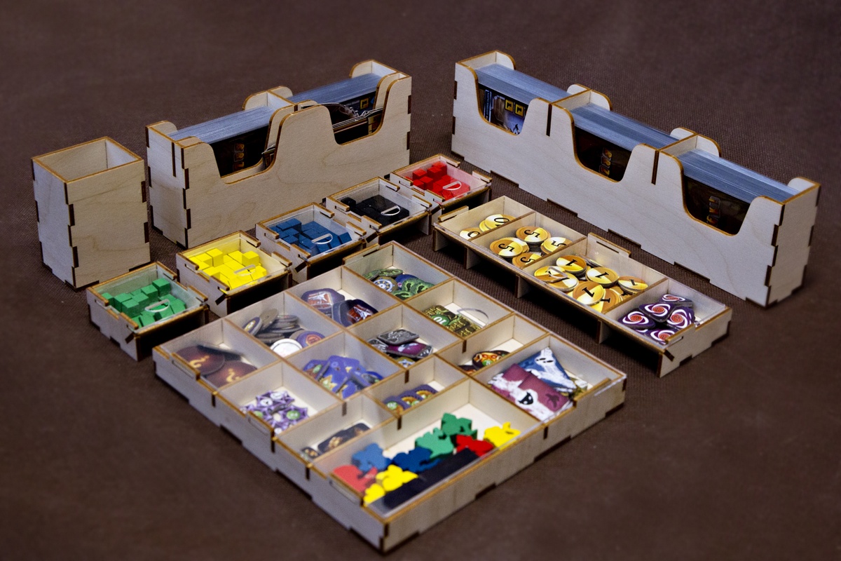 Pudełko wraz z zawartością domyka się bez podniesienia wieka. Insert posiada osobne przegrody na talie kart z dodatków - pozwala to na odseparowanie ich od gry podstawowej. Karty rezerw podzielone są rodzajami. Talia podstawowa (przygód) przechowywana jest w pojemniku, który może pełnić funkcję wydajnego podajnika w trakcie gry. Pojemniki na żetony, kredyty oraz kosteczki z taliami startowymi posiadają zasuwki z pleksi. Takie rozwiązanie umożliwia przechowywanie pudełka w pionie i zawartość pojemników nigdy się Wam nie wysypie.