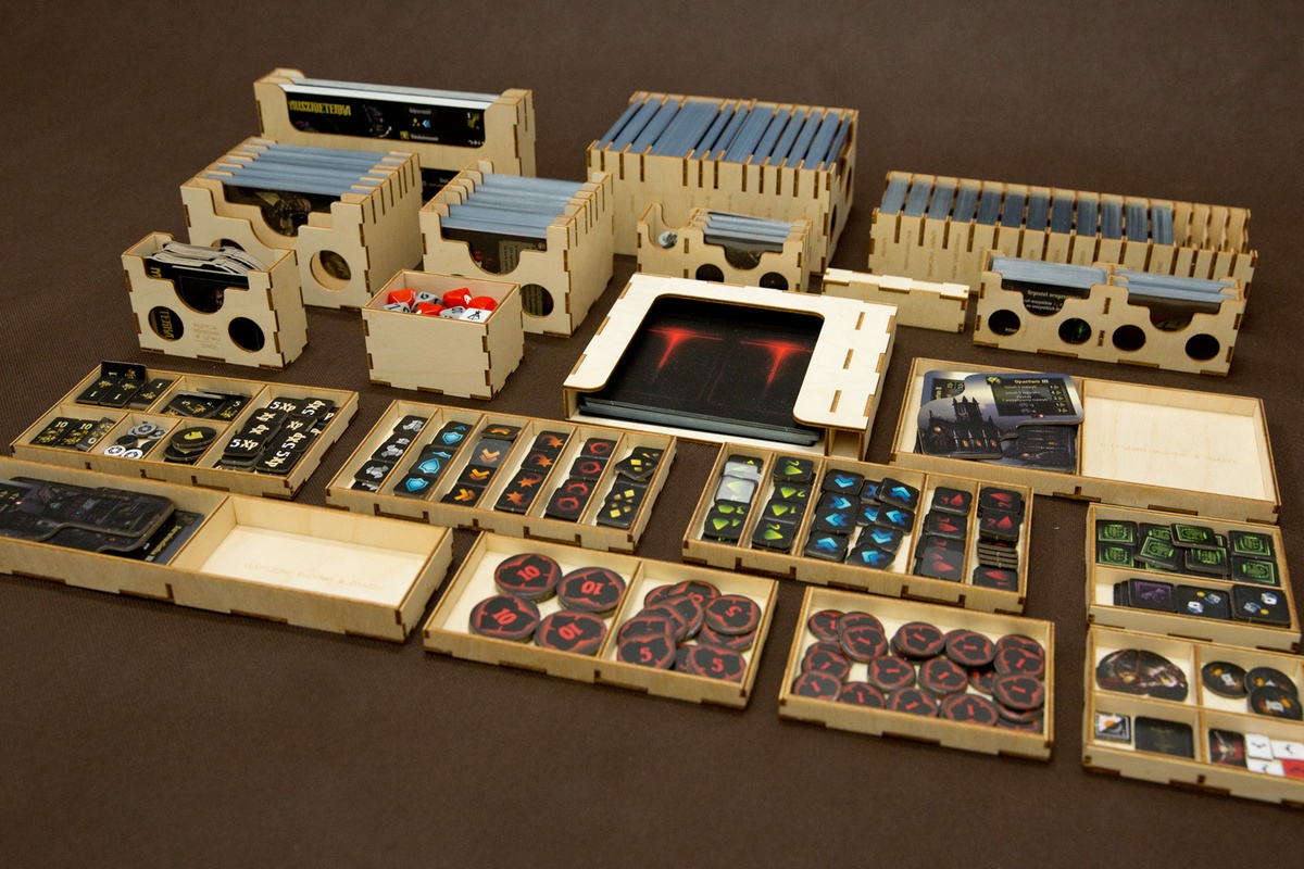 Insert pasujący do gry Darkest Dungeon wraz z dodatkiem The Crimson Court oraz Muszkieterką. Insert jest niezależny od dodatku i obsługuje również samą grę podstawową.
