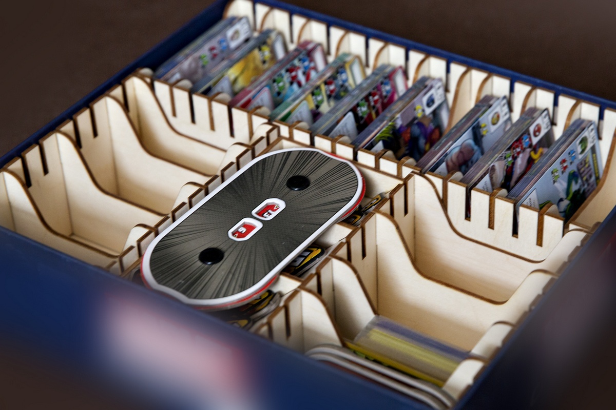 Insert pasujący do gry Marvel Champions The Card Game. Insert pomieści karty w koszulkach o maksymalnej długości 93 mm (szerokość przegrody na karty wynosi 94 mm).