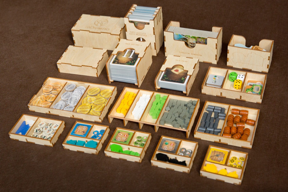 - oddzielne pojemniki na elementy używane tylko podczas przygotowania rozgrywki i oddzielne na elementy używane w trakcie niej,