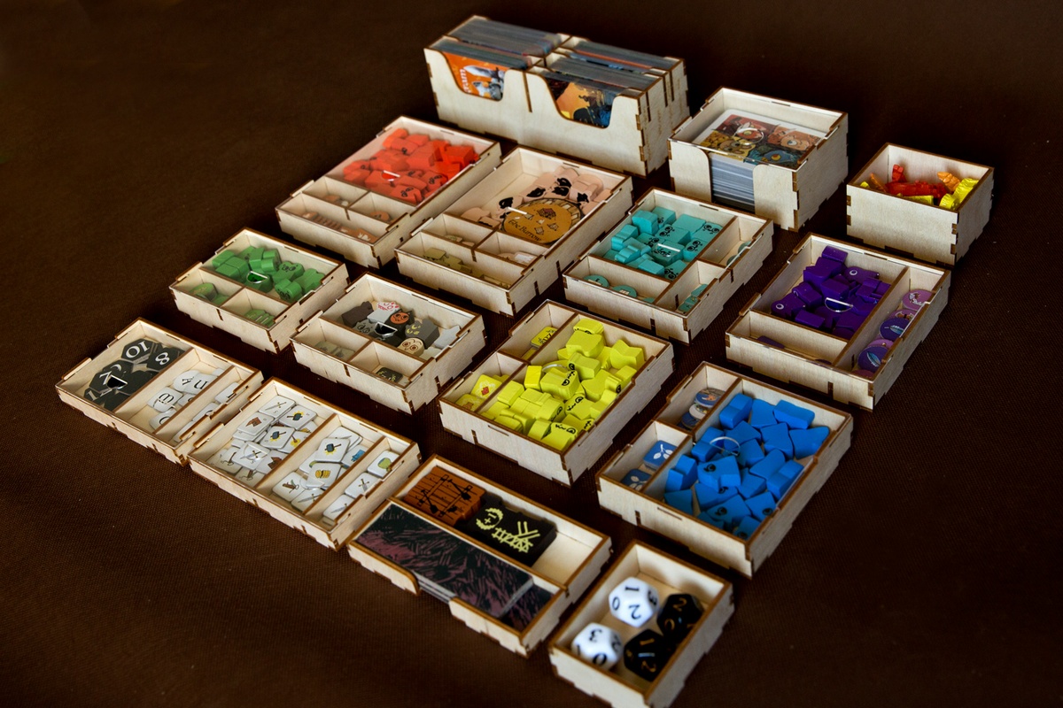 Cena obejmuje elementy insertu do samodzielnego sklejenia. Wykonany jest ze sklejki o grubości 3 mm lub HDF. Sklejka jest dostępna w wersji surowej lub bejcowanej. Do sklejenia wymagany jest klej Wikol, który możesz kupić tutaj. Komponenty gry przedstawione na zdjęciach nie wchodzą w skład sprzedawanego zestawu. Produkt może różnić się kolorystycznie od widocznego na zdjęciach – zależy to od partii drewna/HDF, a w przypadku insertu malowanego – od wybarwienia drewna w trakcie procesu malowania. Insert bejcowany może barwić przy pocieraniu, dlatego zalecamy zaimpregnowanie go lakierem bezbarwnym.