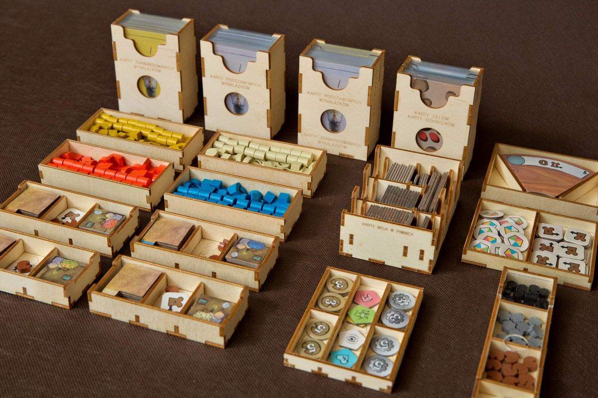 Cena obejmuje elementy insertu do samodzielnego sklejenia. Insert wykonany jest ze sklejki lub HDF-u o grubości 3 mm, nie jest malowany. Do sklejenia wymagany jest klej WIKOL, który możesz kupić tutaj. Komponenty gry przedstawione na zdjęciach nie wchodzą w skład sprzedawanego zestawu. Produkt może różnić się kolorystycznie od widocznego na zdjęciach – zależy to od partii sklejki lub HDF-u.