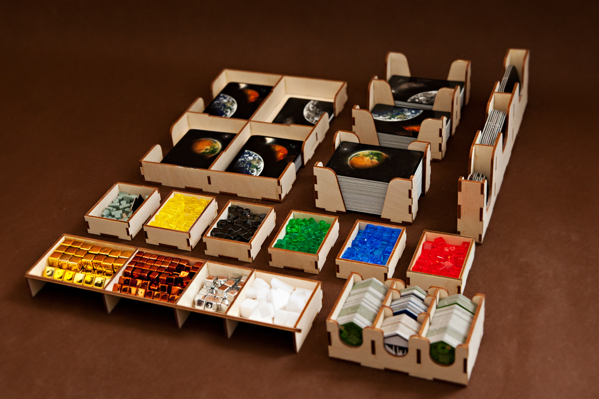 Insert pasujący do gry Terraformacja Marsa. Insert pomieści grę w wersji podstawowej oraz dodatki, które były wydane w wersji polskiej. Znacznym ułatwieniem są wygodne pojemniki na żetony i walutę.