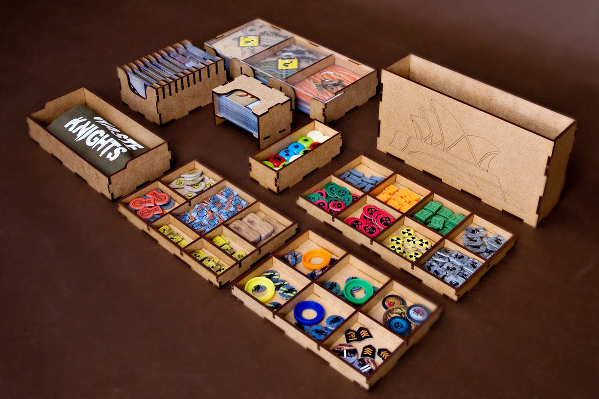 Cena obejmuje elementy insertu do samodzielnego sklejenia. Insert wykonany jest z HDF-u o grubości 3 mm, nie jest malowany. Do sklejenia wymagany jest klej WIKOL, który możesz kupić tutaj. Komponenty gry przedstawione na zdjęciach nie wchodzą w skład sprzedawanego zestawu. Produkt może różnić się kolorystycznie od widocznego na zdjęciach – zależy to od partii HDF-u.