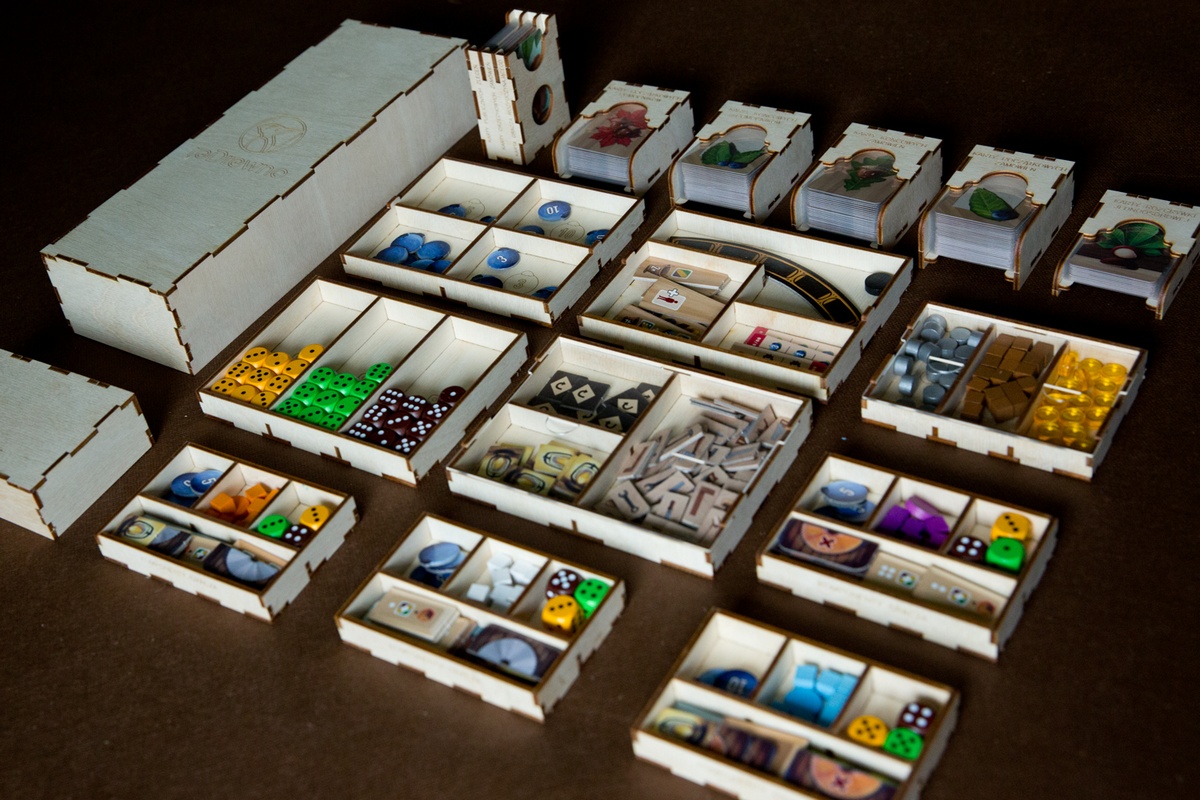 Insert jest przygotowany w formie "otwórz, wyłóż na planszę, graj" - przygotowaliśmy dla Was następujące pojemniki, które wyłożycie na stół po otwarciu pudełka:
