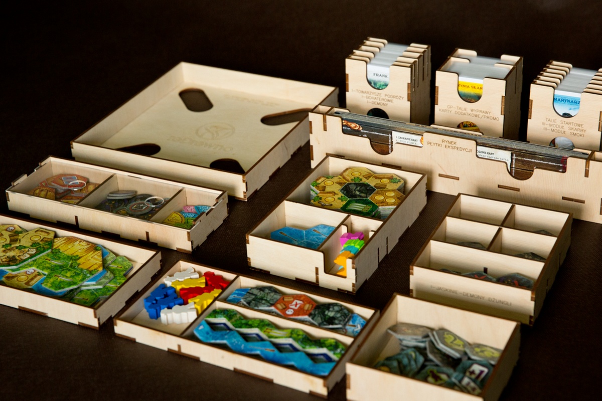Pojemniki w insercie posiadają grawery ułatwiające posegregowanie elementów. Wierzchnie pojemniki z drobnymi żetonami są zasuwane co pozwala na pionowe przechowywanie pudełka. Pojemniki na karty segregują je wg dodatków i rodzajów. Pojemniki na żetony jaskiń pozwalają na ich rozdzielenie wg dodatków.