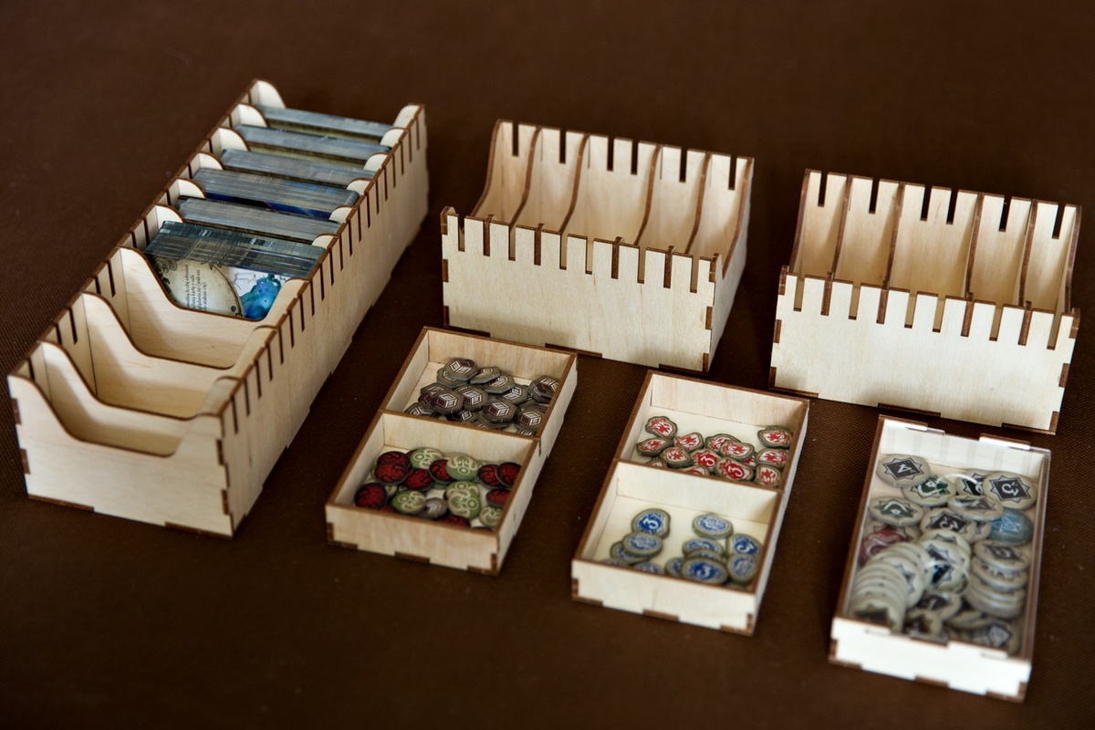 Cena obejmuje elementy insertu do samodzielnego sklejenia. Wykonany jest ze sklejki o grubości 3 mm lub HDF. Do sklejenia wymagany jest klej Wikol, który możesz kupić tutaj. Komponenty gry przedstawione na zdjęciach nie wchodzą w skład sprzedawanego zestawu. Produkt może różnić się kolorystycznie od widocznego na zdjęciach – zależy to od partii drewna/HDF.