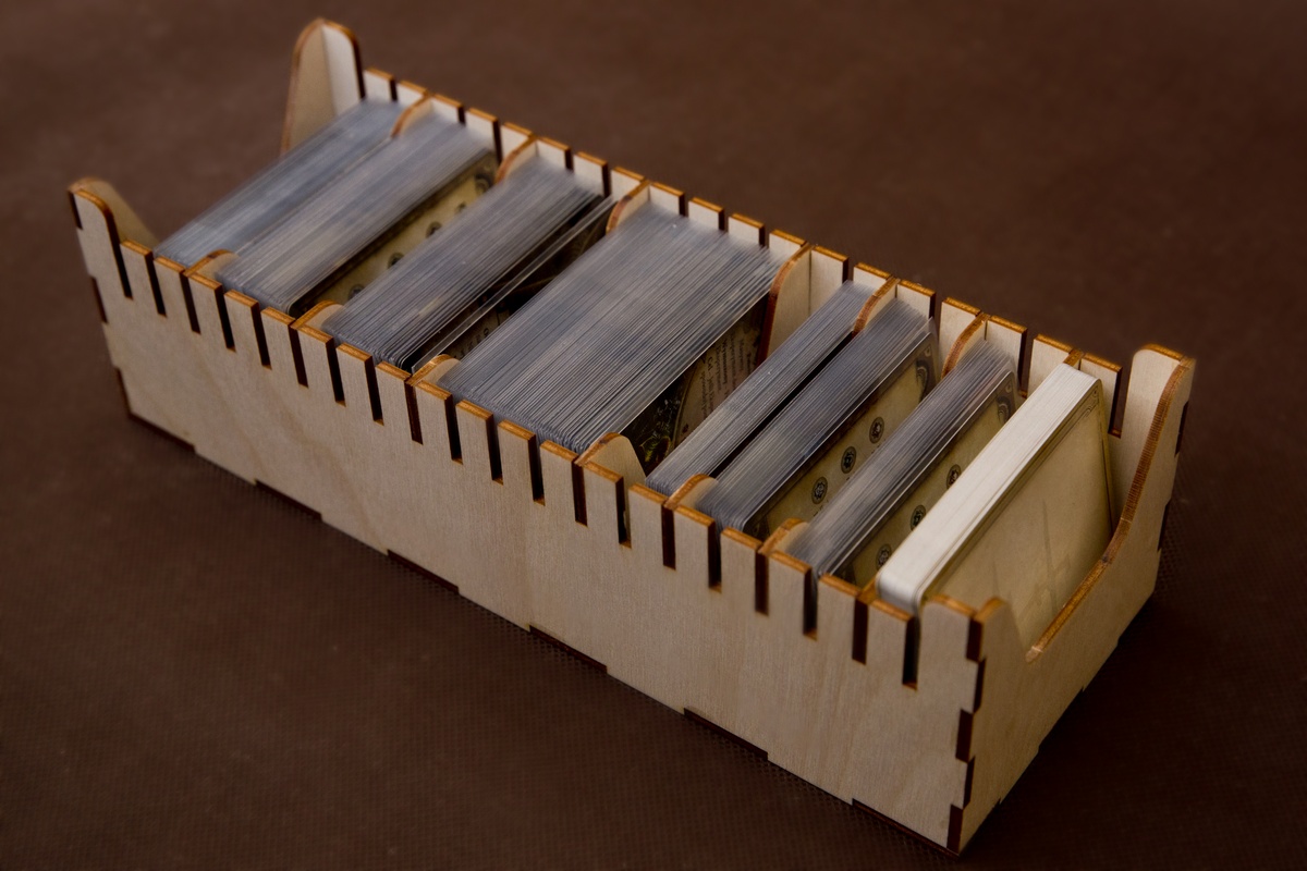 - pozwala na wykorzystanie pudełka do organizacji kolekcji kart,