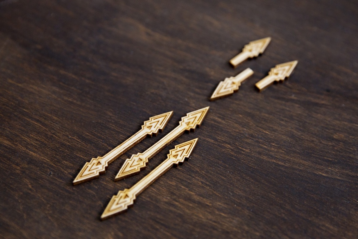 Strzałki wykonane są ze sklejki grubości 3 mm. Grawer jest z jednej widocznej strony podczas gry.