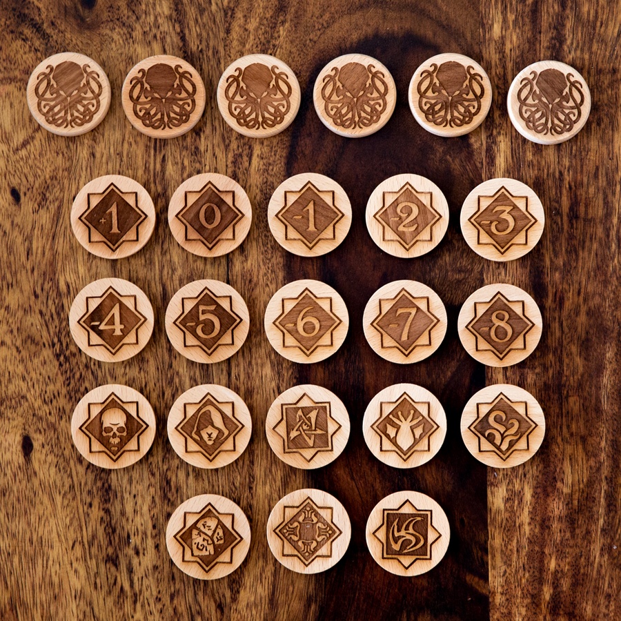 Żetony chaosu z litego drewna pasujące do gry Horror w Arham LCG