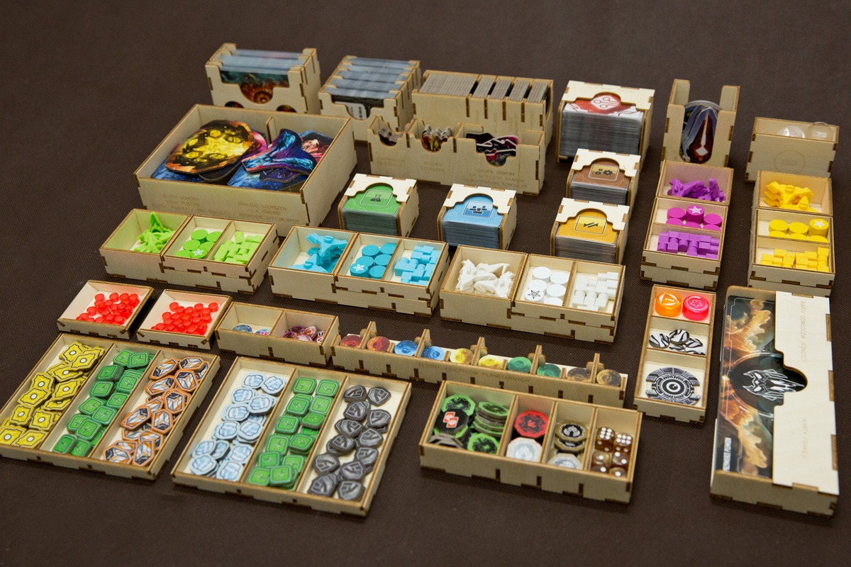 Insert jest przygotowany w formie "otwórz, wyłóż na planszę, graj" - przygotowaliśmy dla Was następujące pojemniki, które wyłożycie na planszę oraz stół po otwarciu pudełka: