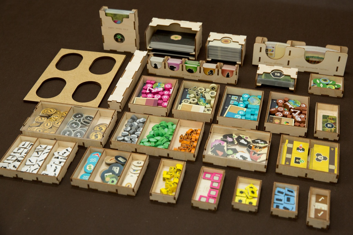 - pojemniki posiadają grawery ułatwiające porządkowanie elementów gry.